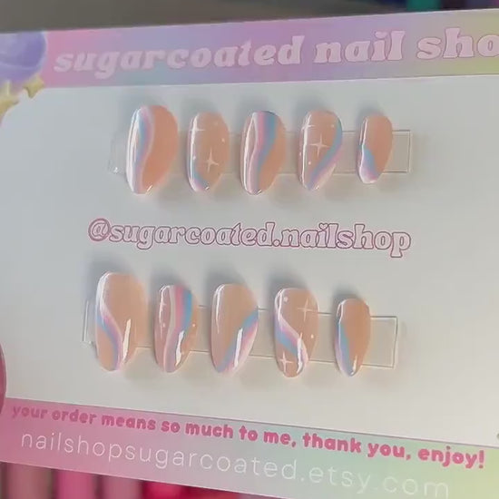 Each set is handcrafted, hand-painted, and made from scratch by the seller at Sugarcoated Nail Shop. Your order is uniquely tailored to your preferences and sizing. The images show a finished customized item similar to the product you will receive. The pictures represent the art inspiration for your set. Since all sets are made to order and unique to your custom specifications, the product you receive will not be exact to the inspiration photo — this is simply to help you visualize the final look of your custom set.