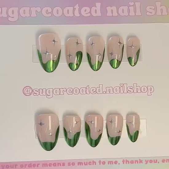 Each set is handcrafted, hand-painted, and made from scratch by the seller at Sugarcoated Nail Shop. Your order is uniquely tailored to your preferences and sizing. The images show a finished customized item similar to the product you will receive. The pictures represent the art inspiration for your set. Since all sets are made to order and unique to your custom specifications, the product you receive will not be exact to the inspiration photo — this is simply to help you visualize the final look of your custom set.